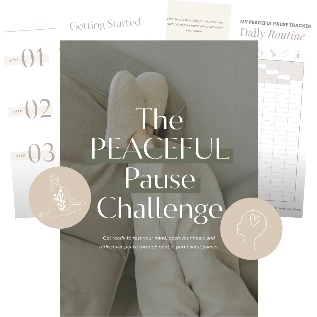 If your've been feeling scattered, tense or constantly 'ON', the Peaceful Pause Challenge will guide you through short, intentional daily practices that help you create real calm and connection, one gentle pause at a time.